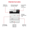- Dung lượng giấy lớn: Khay giấy tiêu chuẩn 250 tờ và có thể mở rộng, giảm thiểu thời gian nạp giấy.